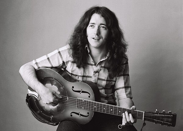 Gallagher developed a passion for music at a young age through radio broadcasts, tuning in to Radio Luxembourg, the BBC, and the American Forces Network. His earliest musical inspiration was Roy Rogers, “the Singing Cowboy,” followed by Lonnie Donegan, whose skiffle interpretations of American blues and folk artists introduced Gallagher to the genre. He later discovered rock and roll—particularly Buddy Holly, Eddie Cochran, and Chuck Berry—before finding his most significant influence in Muddy Waters. He also cited Woody Guthrie, Big Bill Broonzy, and Lead Belly among his inspirations.